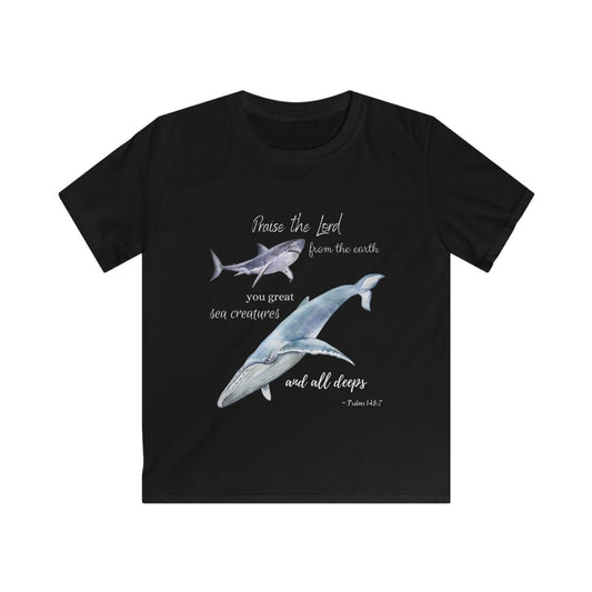Praise the Lord - Psalm 148:7 with Whale and Shark Kids Softstyle T-Shirt