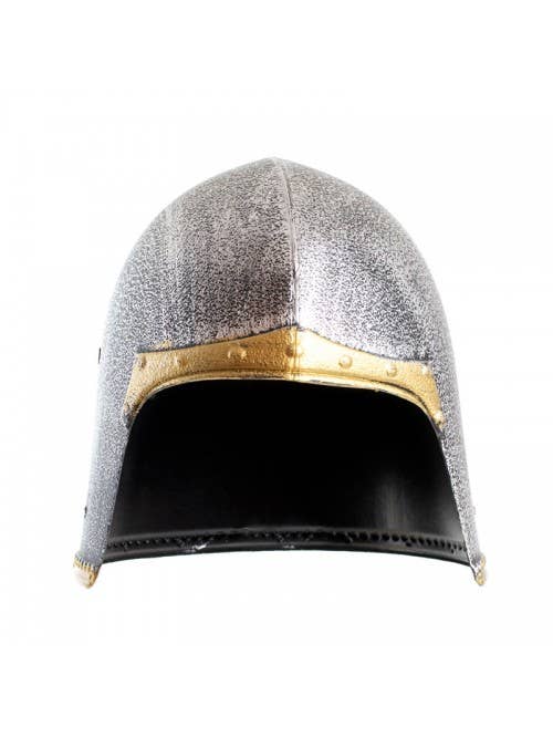 This plastic helmet is modeled after the historical medieval Bascinet style which was a common style in use in medieval Europe. The interior is padded with foam in certain places to provide comfort and has an elastic chin band to hold the helmet well on the head. Size suitable for ages 4-12 depending on head size. If you like this model, but would prefer to avoid items made in China, we have an identical helmet made in Spain which you can find here.