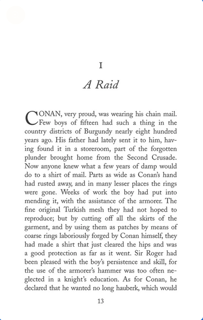 In the country of Burgundy, the Sauval brothers have begun to terrorize the surrounding lands in an attempt to bring the area under their control. They raid the Red Keep, in hope of gaining it for themselves, only to be thwarted by Sir Roger and young Conan. Now they plot anew to steal the Keep from its rightful owner, Lady Anne. She, with Conan and her loyal followers, sets out to bring justice upon the evil brothers. An action-filled tale with the authentic flavor of the twelfth century, by the author of The Lost Baron.